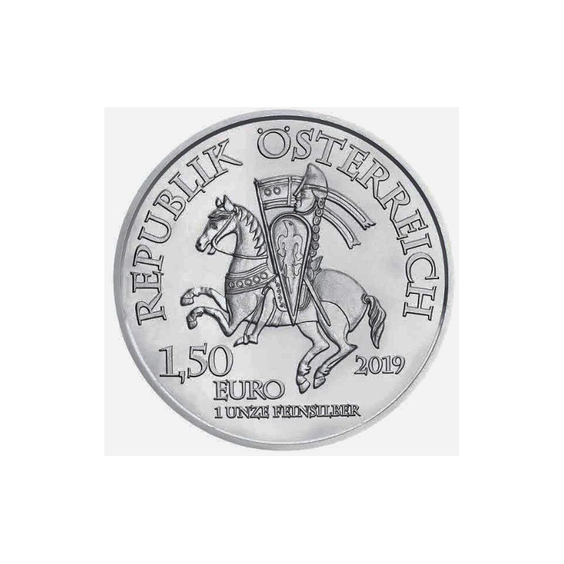 Primera moneda de las tres onzas de aniversario de plata 999 para contar el mito fundador de la "Münze Wien", la Casa de la Moneda de Viena. Este primer número de esas tres onzas de aniversario está dedicado a Leopoldo V. En 1191 se produjo una disputa por el botín entre dos cruzados, Leopoldo V. y el rey inglés Ricardo I. Corazón de León. A su regreso a Inglaterra, Richard fue arrestado en diciembre de 1192 y se exigió un rescate. Los ingleses pagaron una gran cantidad de plata, a partir de la cual Leopold fundó la Wiener Neustadt y la primera ceca de Viena. Esta moneda de plata especial Leopold V. convierte su colección en un emocionante viaje de regreso a la historia antigua de Europa.
