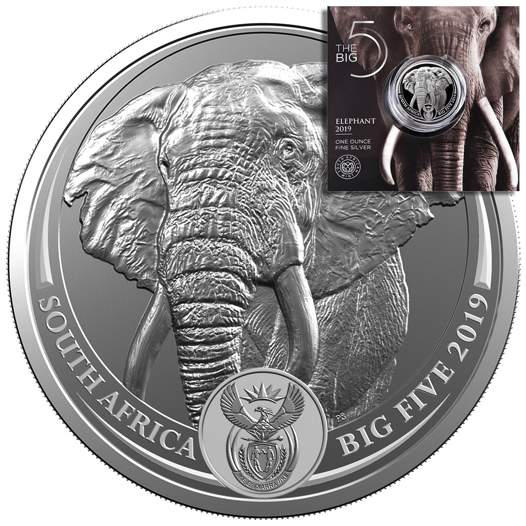 El reverso de la moneda presenta dos mitades de un retrato de elefante de modo que cuando dos de las monedas se colocan una al lado de la otra, se ve un retrato completo de primer plano de un elefante; al colocar muchas de estas monedas una al lado de la otra, se puede ver una manada de elefantes. La serie Big Five viene en una tarjeta blíster ilustrada.