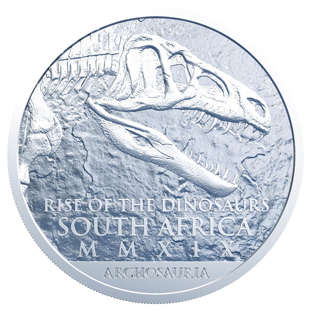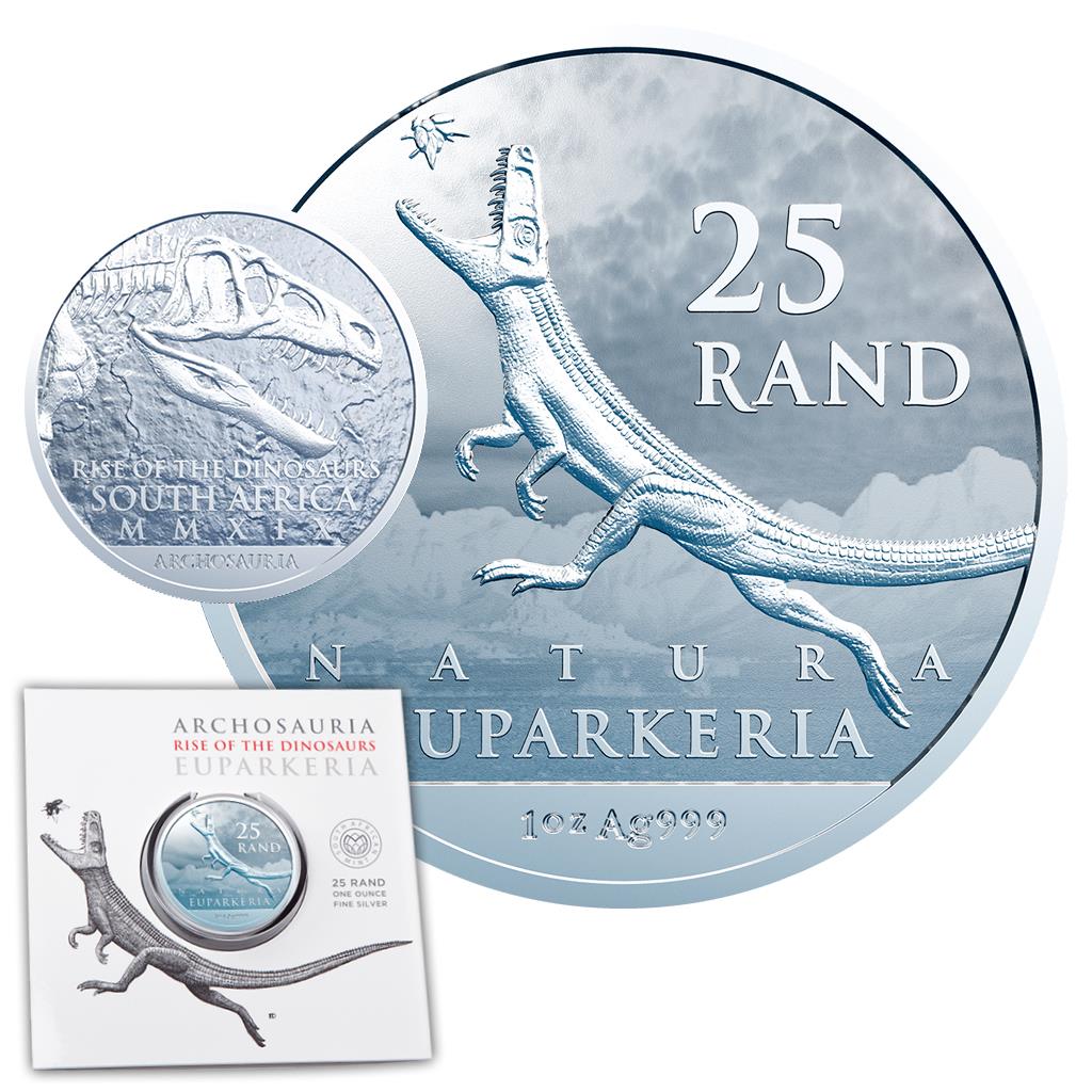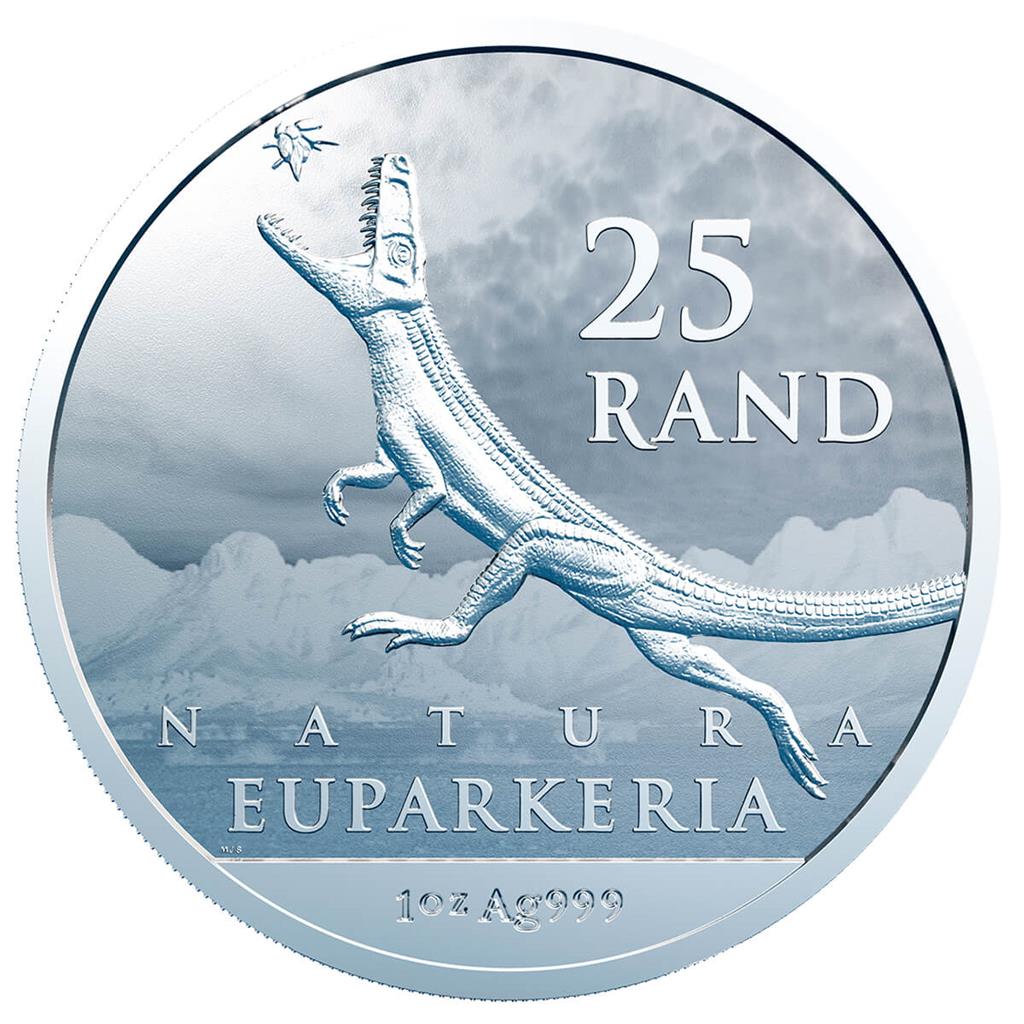 La Serie Natura comienza con la introducción de la paleontología, en reconocimiento de la importancia de Sudáfrica en este campo y el estudio de los fósiles de plantas y animales. La primera moneda de ésta temática se llama El surgimiento de los dinosaurios . Los Archosaurios vivieron en el sur de África hace más de 200 millones de años y son considerados los antepasados directos de los dinosaurios. El surgimiento de los arcosaurios y su evolución es un hecho significativo en la historia de la vida en la tierra, ya que no solo llevaron a la evolución de los dinosaurios y las aves, sino también a los pterosaurios (reptiles voladores) y los cocodrilos. Representado en la moneda de plata es la Euparkeria Capensis. El reptil vivió hace aproximadamente 235 millones de años durante el período Triásico Medio. Fue descubierto por primera vez a principios del siglo XX en Sudáfrica.