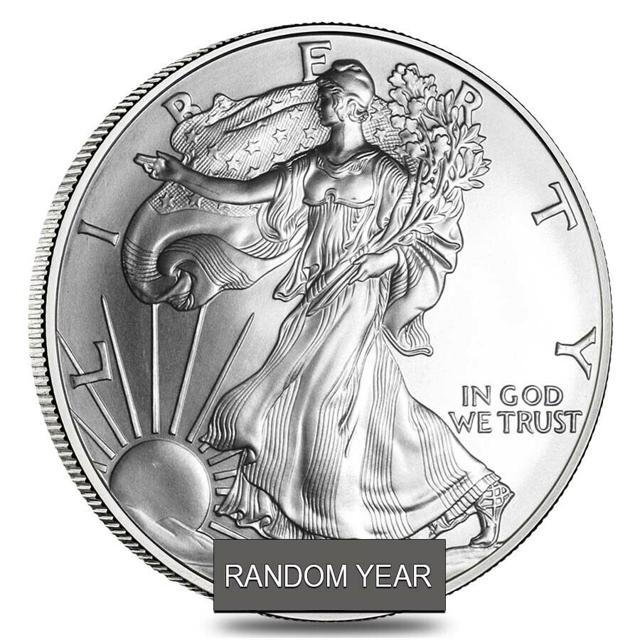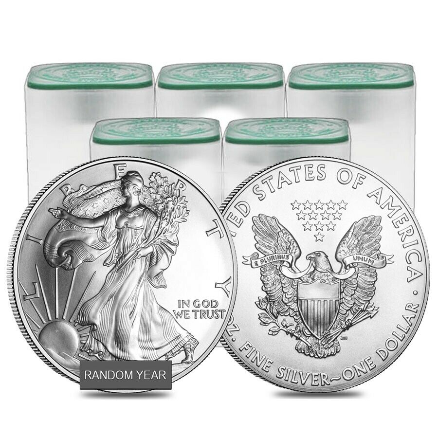 Monedas de plata de la colección American Eagle de diferentes años variados. Puede haber varias del mismo año. Diferentes al año en curso. El Silver Eagle es una de las monedas de inversión. Es la moneda de plata más grande y pesada de los Estados Unidos. El primer Silver Eagle se lanzó en 1986 y hasta el día de hoy se han publicado nuevas ediciones anualmente. Cuando apareció, Silver Eagle fue la primera moneda de plata pura de los Estados Unidos.