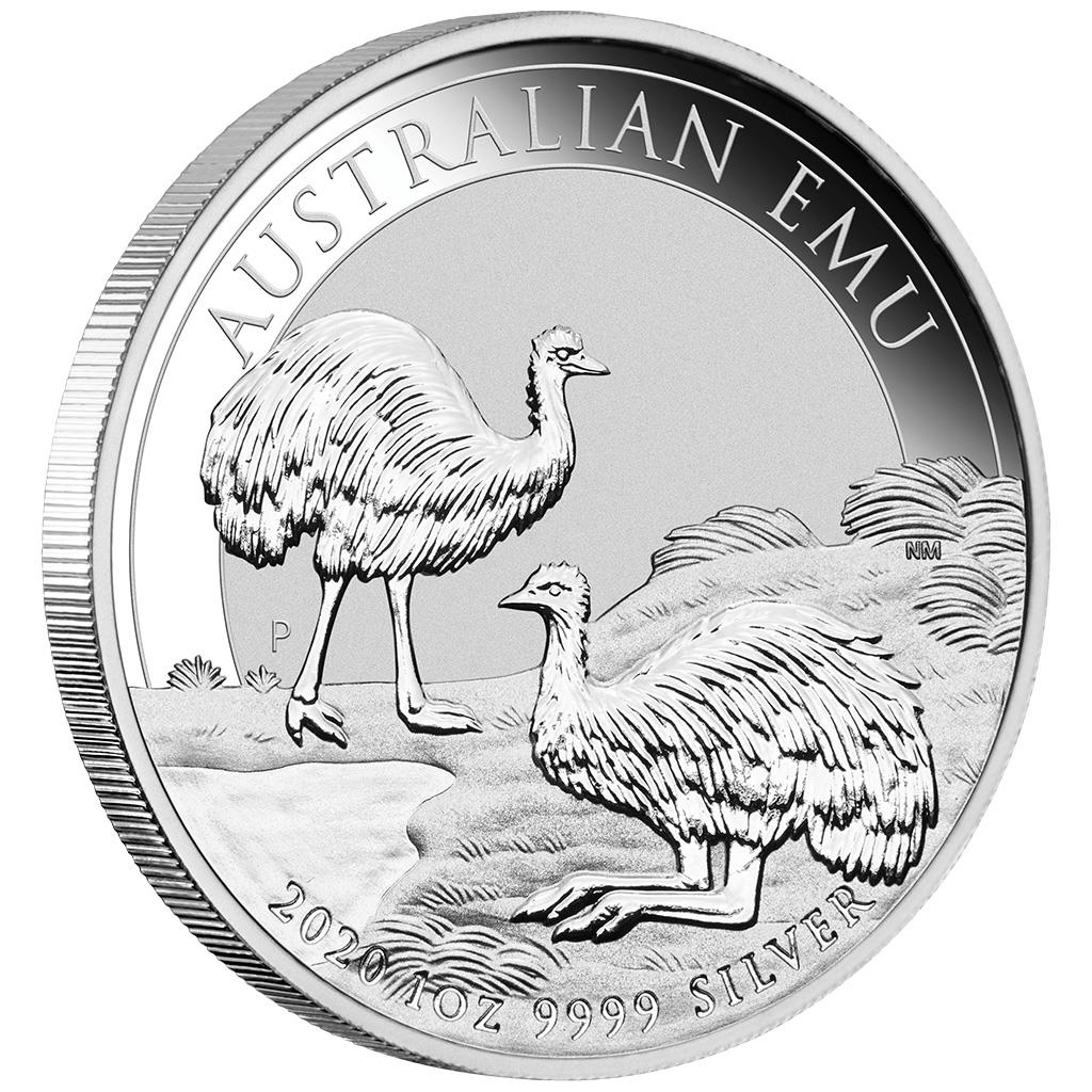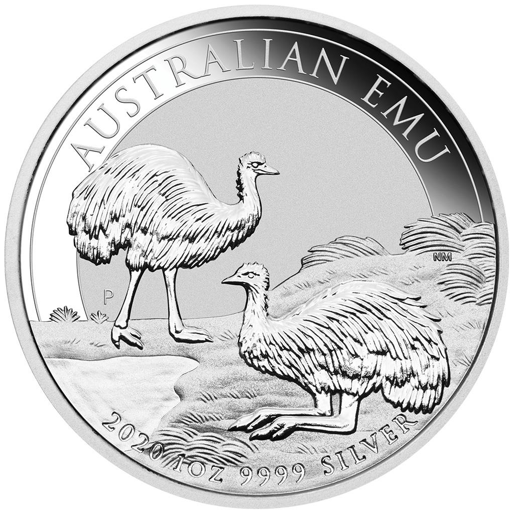 El motivo de la moneda presenta un emú en pie y otro reclinado en un paisaje típico australiano. Además, la letra de estampación "P" de la Casa de la Moneda de Perth y las inscripciones "AUSTRALIAN EMU", "2020", así como el peso y la finura de la moneda están incluidas en el diseño. El emú, como el avestruz y el kiwi, pertenece a los llamados ratitas. Debido a que son muy grandes y pesados, no pueden volar, pero pueden correr persistente y rápidamente. Emus son nativos de toda Australia.