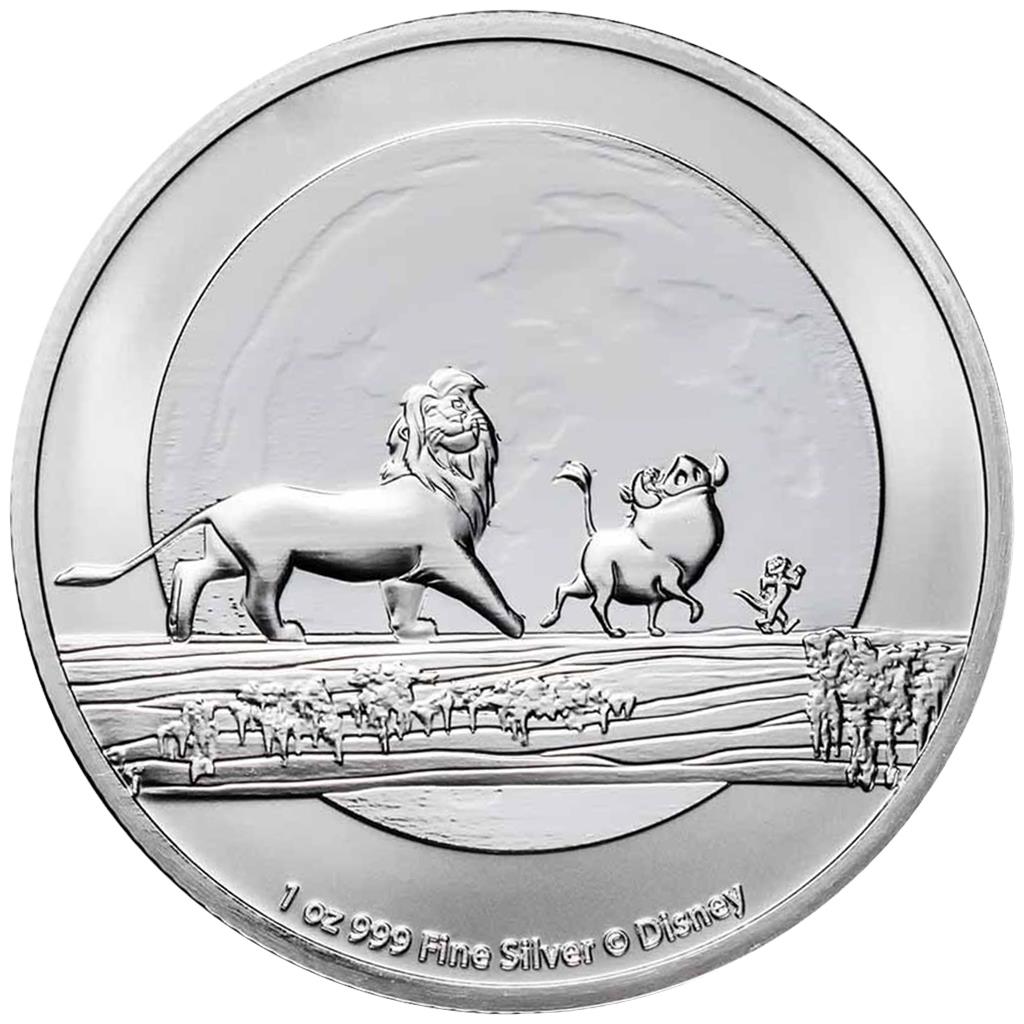Se representa una de las escenas clave de la película animada. Se presenta el famoso montaje musical de " Hakuna Matata ", que muestra a un Simba adulto caminando con sus amigos Timon y Pumba sobre un tronco de árbol caído. El fondo está dominado por una luna llena en el cielo en acabado brillante que resalta en la moneda.