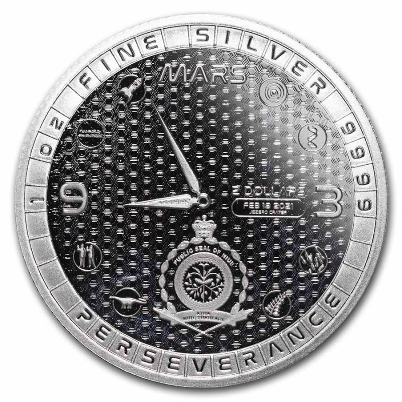 El programa Mars 2020 de la NASA tiene el objetivo de identificar posibles signos de vida microbiana en el planeta rojo y amartizó en el cráter marciano Jazero el 18 de febrero de 2021. Ya se han enviado algunas imágenes extraordinarias y la gama de equipos que se están utilizando. hacerlo es bastante fascinante, especialmente el ingenio del helicóptero experimental. El tema de esta moneda es el Mars Rover principal, Perseverance , responsable de hacer la investigación. Este vehículo de una tonelada es un desarrollo del anterior rover Curiosity.